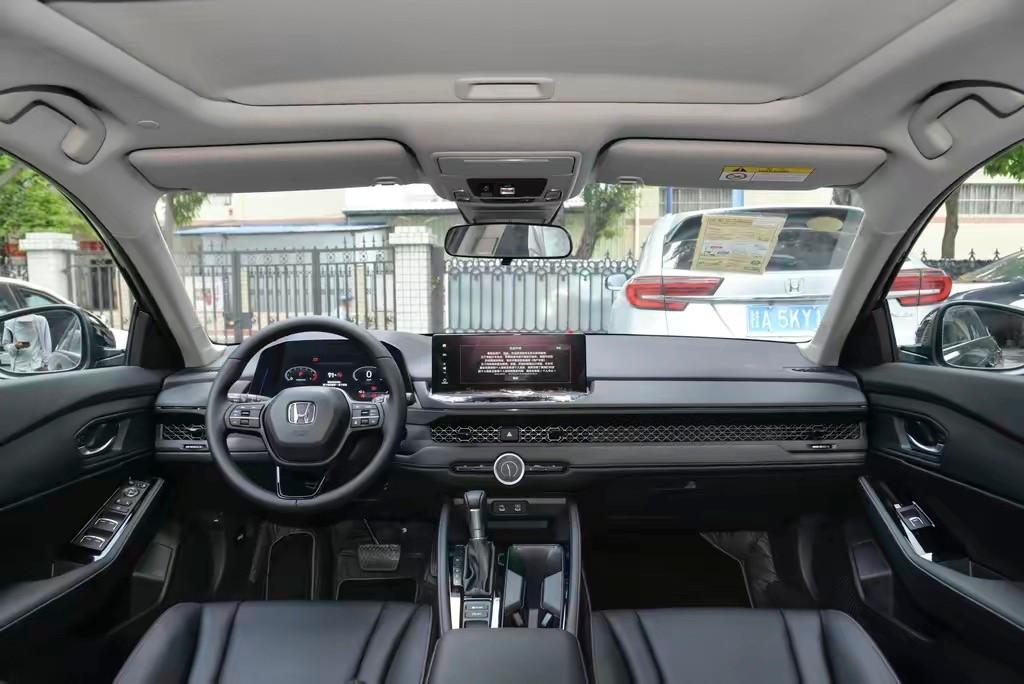 進入到雅閣的前排,平心而論,和動感至上的外觀設計對比,座艙造型的確有些遜色。對稱式的中控臺布局,一句話形容概括就是中規中矩,實用性強。不過在細節處理上,雅閣還是有一定新意可言的。例如貫穿設計的空調出風口和位于中間位置的快速調節按鍵,確保了實用性的同時,也有著較強的設計美感。12.3英寸的懸浮式中控顯示屏,內置Honda Connect4.0系統,支持主流的手機互聯以及OTA升級,智能化表現能夠較好滿足主流消費者的用車需求。