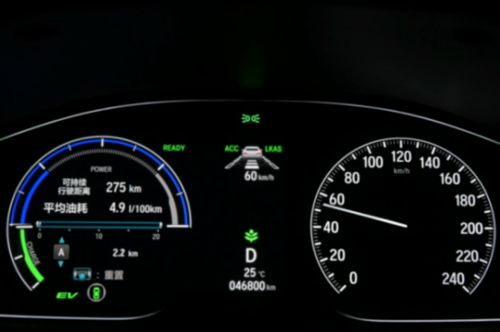 (圖:雅閣電機(jī)的驅(qū)動(dòng)能力很強(qiáng),60-80km/h巡航時(shí),時(shí)常可以只靠電機(jī)驅(qū)動(dòng))
