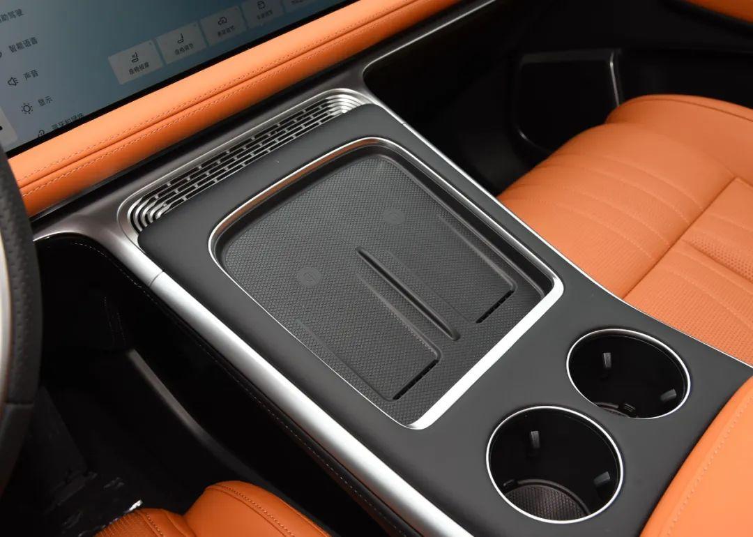 在中央島臺位置,老款車型略顯廉價且容易臟的烤漆面板被取消,新款改成了更有質感的皮質包覆。同時,老款車型前排僅提供一個15W無線充電位,而新款則升級成了兩個帶有風冷的50W無線充電面板。