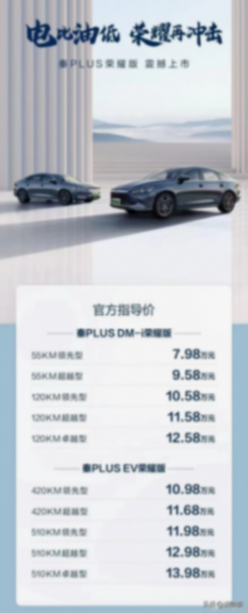 比亞迪秦PLUS榮耀版正式上市,打出“油比電低”的新口號,而DM-i 版本最低價格,只要: