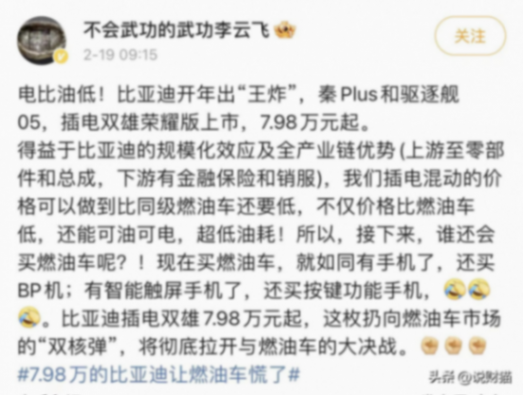 一年前比亞迪說賣9.98的時候,已經殺瘋了一片!