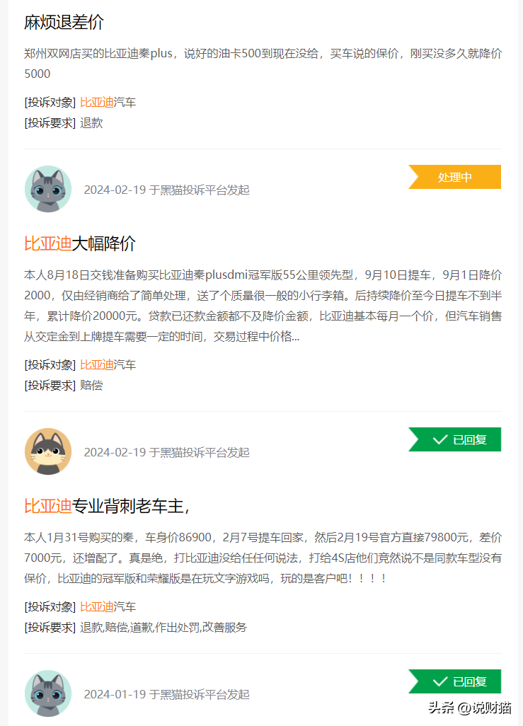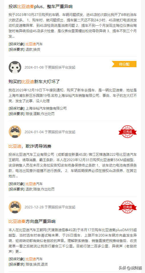 便宜到底有沒有好貨,貓姐也不知道,畢竟黑貓投訴上關于比亞迪秦的投訴,已經達到848條。