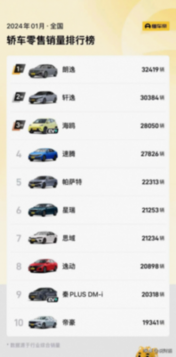 但今年1月份,秦PLUS DM-i只賣了20318輛,排名也掉到了第9位。