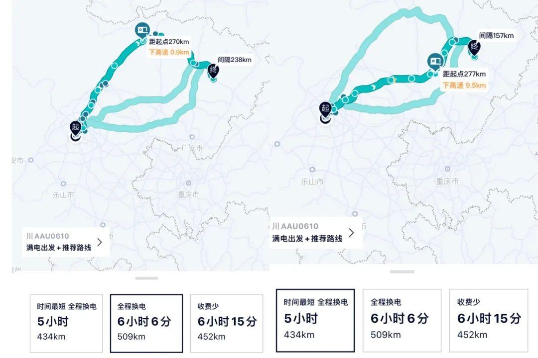 我的自駕線路倒是簡單,初二陪老婆回娘家,單程接近500公里,所以中途要補(bǔ)能。蔚來APP里查線路和補(bǔ)能計劃很方便,出發(fā)前一查就發(fā)現(xiàn)兩條日常線路都已經(jīng)布局有高速換電站了,并且還不止一個,可以根據(jù)車的電量情況酌情選擇靠前換電還是靠后換電。