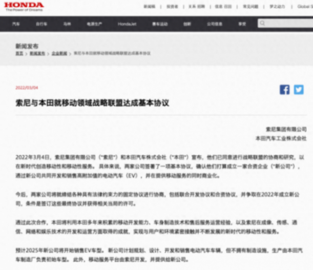 對標特斯拉,索尼本田將推三款新車