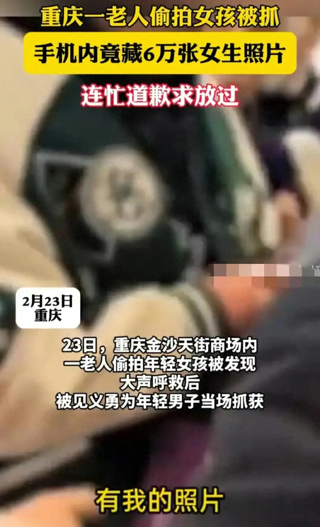 但這次是實錘了,老漢偷拍年輕美女被抓了現(xiàn)行,查出手機里確實有女孩本人的照片,而且警察查出共有6萬張。
