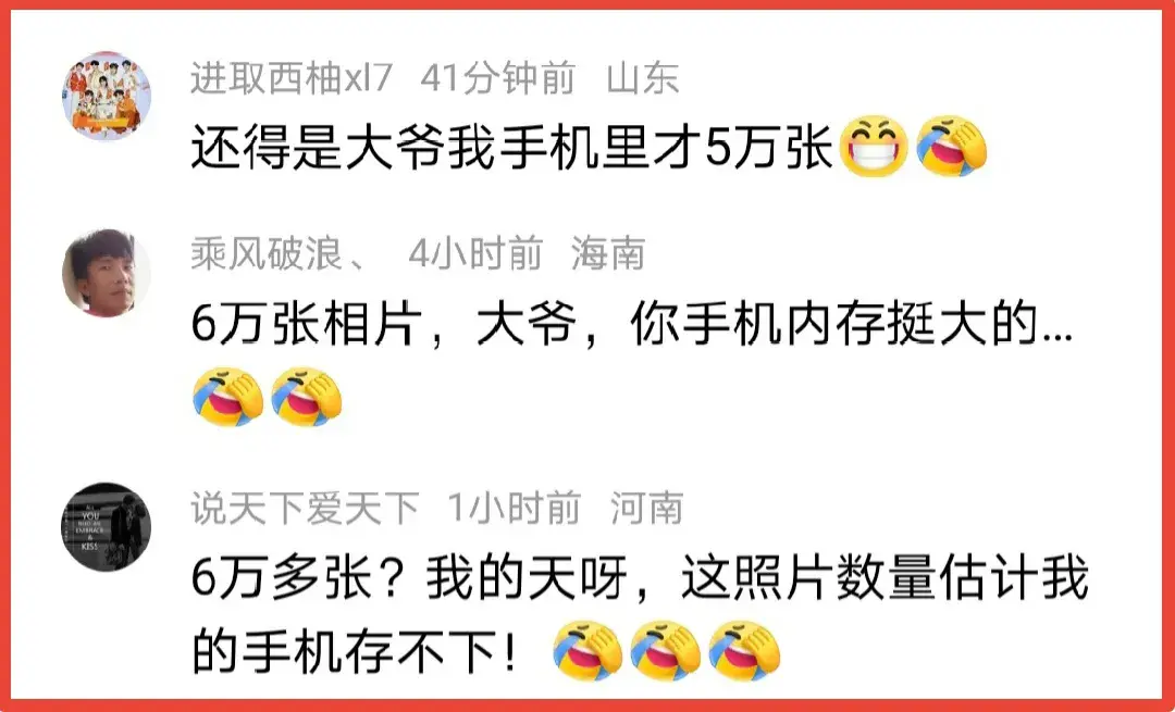 “還得是大爺,我手機里才5萬張。”