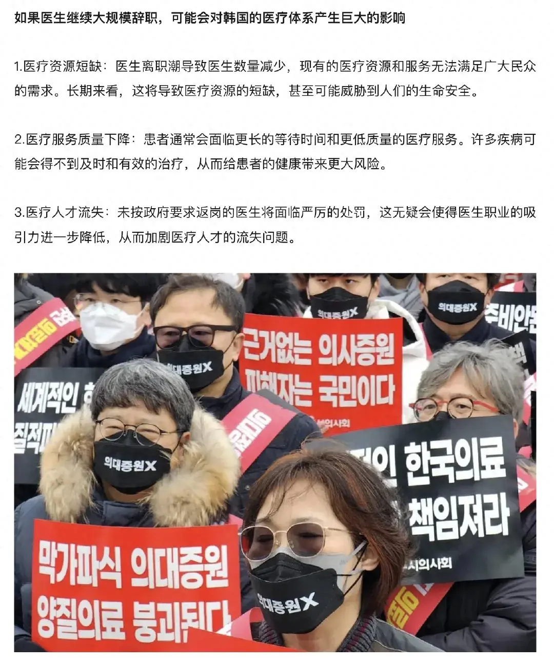 根據(jù)新規(guī)定,韓國(guó)政府認(rèn)為醫(yī)生作為國(guó)家重要的衛(wèi)生資源,應(yīng)該盡可能為國(guó)家服務(wù)。因此,如果醫(yī)生辭去工作,他們必須無(wú)條件地服兵役,為國(guó)家的安全和健康貢獻(xiàn)自己的力量。政府表示,這樣做的目的是確保醫(yī)療資源的穩(wěn)定性,以及國(guó)家安全體系的完整性。