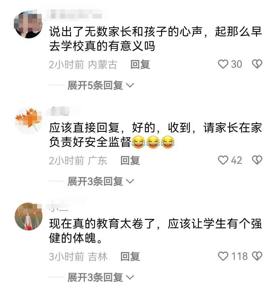 首先說支持的,有人覺得這是說出了很多家長的心聲,認為起這么早毫無意義,健康的身體,快樂的心情比什么都重要。還有人說這個家長很勇敢說出了自己不敢跟老師說的話。