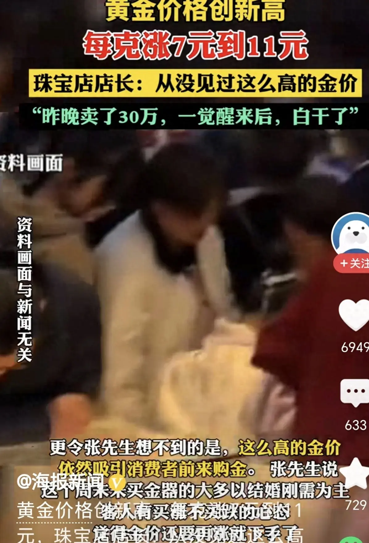 可是最近有一個珠寶店的老板,卻要哭死了!因為他賠了!事情到底是怎么樣呢,我們一起來看下。這個老板經常直播來賣自己的黃金,因為直播已經成了很重要的銷貨渠道!沒想到前一天晚上賣了30萬的黃金,本來是好事,自己也能稍微賺點!自己的庫存賣出去了,自己就要補貨!沒想到的是第二天醒了,黃金售價又創新高!這讓老板哭笑不得!因為自己補貨的時候,就要花更多的錢!相當于同樣的飾品,自己賣30萬,可是進價也相對應的提起升了!