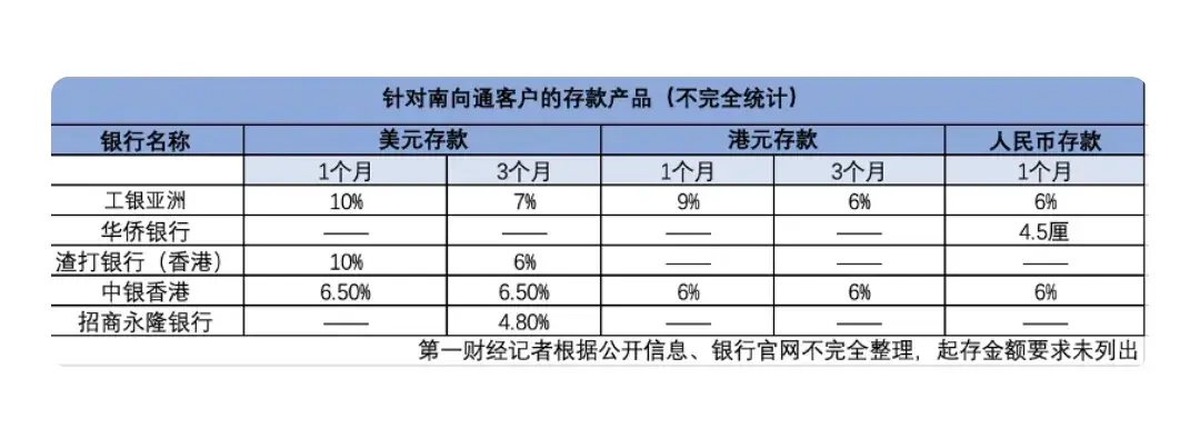 據報道,中銀香港推出的跨境理財通存款產品,包括人民幣、港幣和美元定期存款,利率都相對較高。此外,還有一些外資銀行推出的1個月美元定期存款,年利率高達10%。然而,這些高利率存款產品通常是短期、針對新客戶的特別優惠產品,目的是吸引客戶辦理業務,讓客戶體驗港澳市場和跨境融資的機會。
