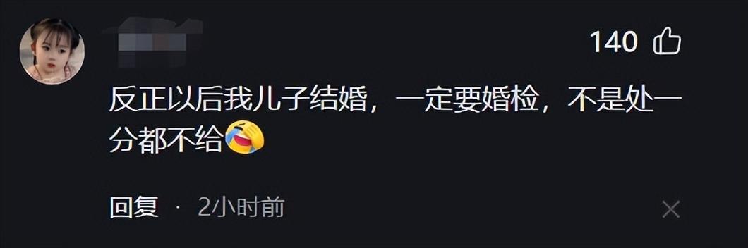 結婚做婚檢,男女雙方都應該要去做,這位友友可一定要守好自己的兒子的貞潔啊!