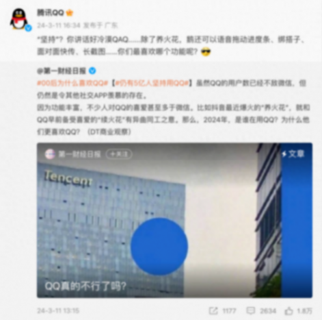 相關報道顯示,月狐數據2023年12月統計的QQ月活躍賬戶數達5.9億,比微博和知乎加在一起還要多。