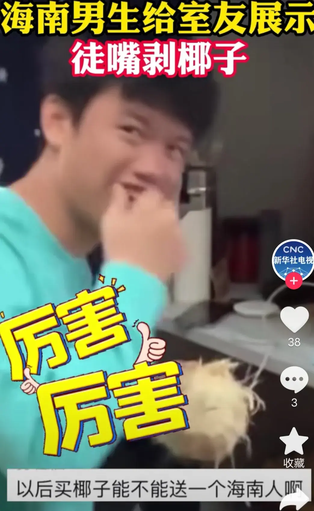 每個島嶼都有它獨特的傳統和文化符號,而椰子則是海南獨有的標志。通過這位男生的精彩演繹,我們更能領略到海南人椰子之戀,見證椰子文化的博大精深。