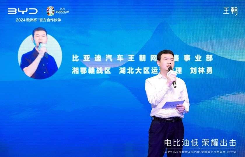 隨后,比亞迪王朝網銷售事業部 湘鄂贛戰區 湖北大區運營經理 劉林勇先生 分別對宋元榮耀版進行了詳細的介紹。 他提到,宋Pro DM-i榮耀版擁有DM-i超級混動技術帶來的“快、省、靜、順、綠”五大顛覆實力的同時。在外觀和智能方面,宋Pro DM-i榮耀版也同步進行了煥新升級,實現入門即滿配,僅需10.98萬元起,便可擁有3D全景透明影像、自適應旋轉懸浮Pad、雙溫區自動恒溫空調等高階功能,為消費者帶來SUV車型新選擇。