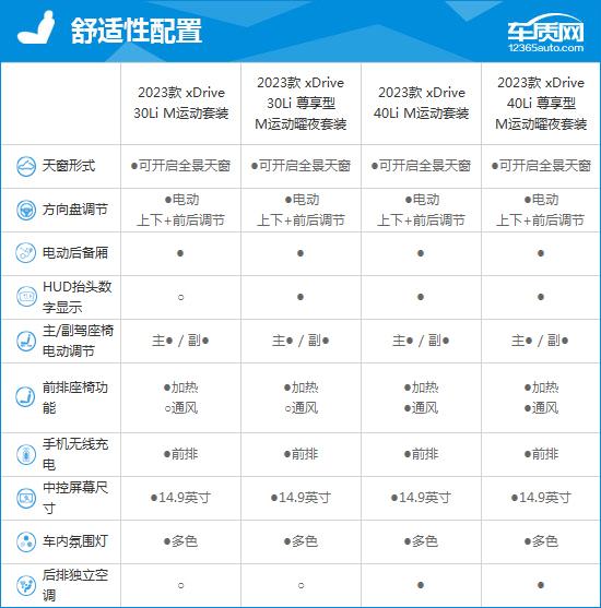 作為一款豪華品牌中大型SUV,即便是入門版本,配置表現也不會過于寒酸,舒適性和安全性的表現與中高配車型相差并不是很大,滿足日常使用綽綽有余。同時,2023款華晨寶馬X5分為搭載2.0T發動機的30Li車型和3.0T發動機的40Li車型,動力差距比較明顯的。