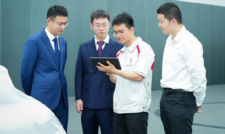 滴滴自動(dòng)駕駛COO、安滴科技總經(jīng)理孟醒(左)與廣汽埃安副總經(jīng)理、安滴科技董事長(zhǎng)(右)進(jìn)行造型評(píng)審