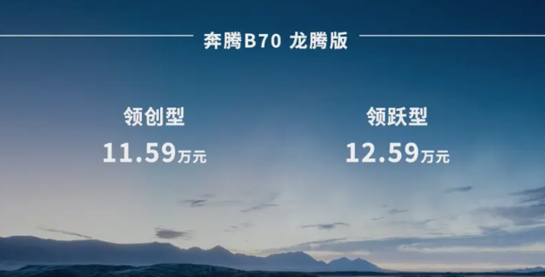 一汽奔騰發布了奔騰B70龍騰版,其中1.5T領創型售價11.59萬,1.5T領躍型售價12.59萬。