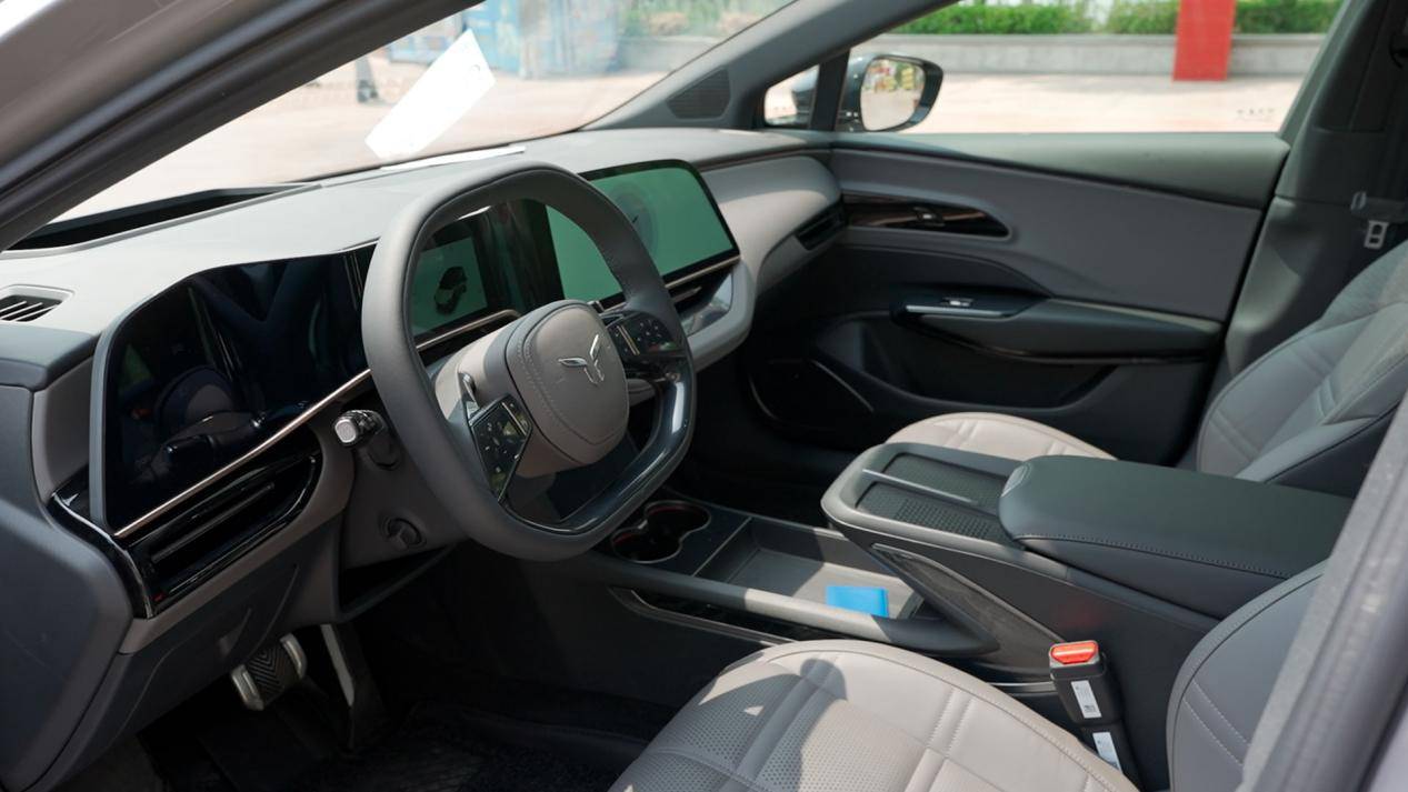 內飾我覺得是這款車的一大亮點,比如彩旗飄飄的三聯屏,科技感十足,而且紅旗EH7敢于打破常規,中控屏采用不規整形狀,十分有新意,再加上類似鏤空的雙幅方向盤,凸顯出新能源屬性。