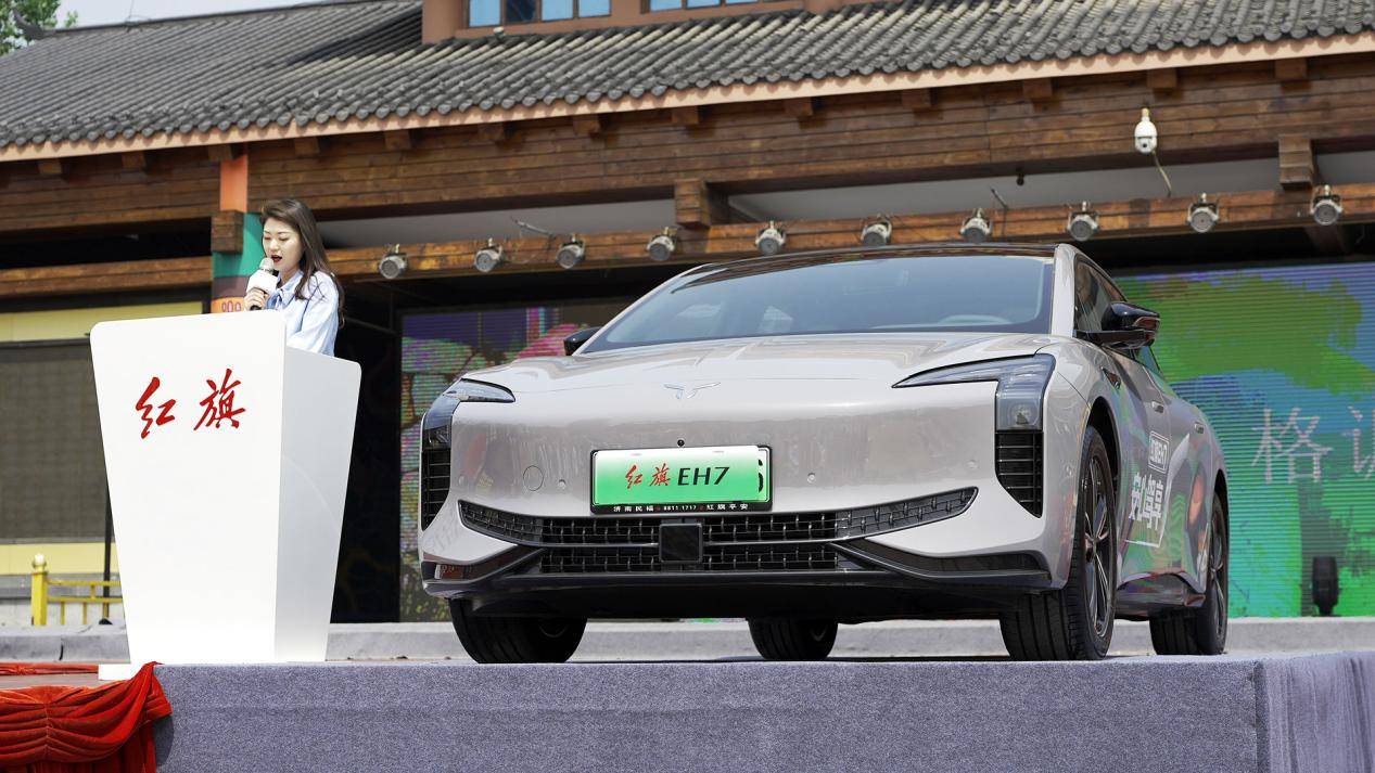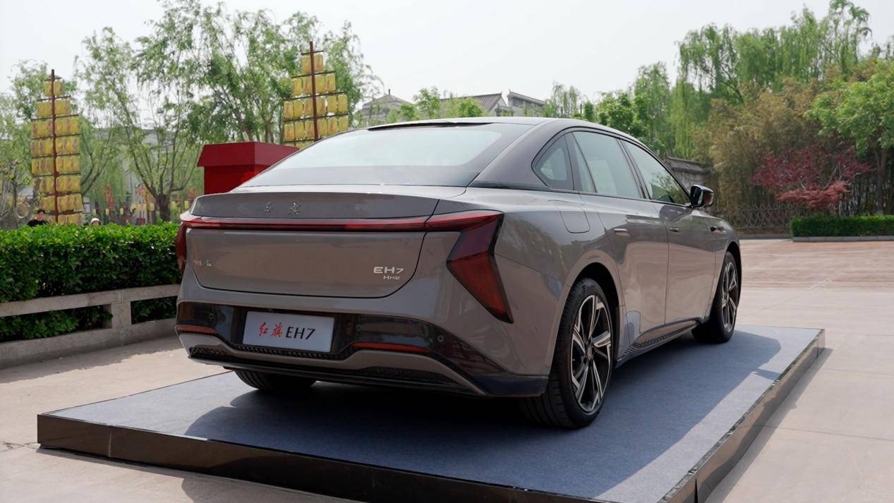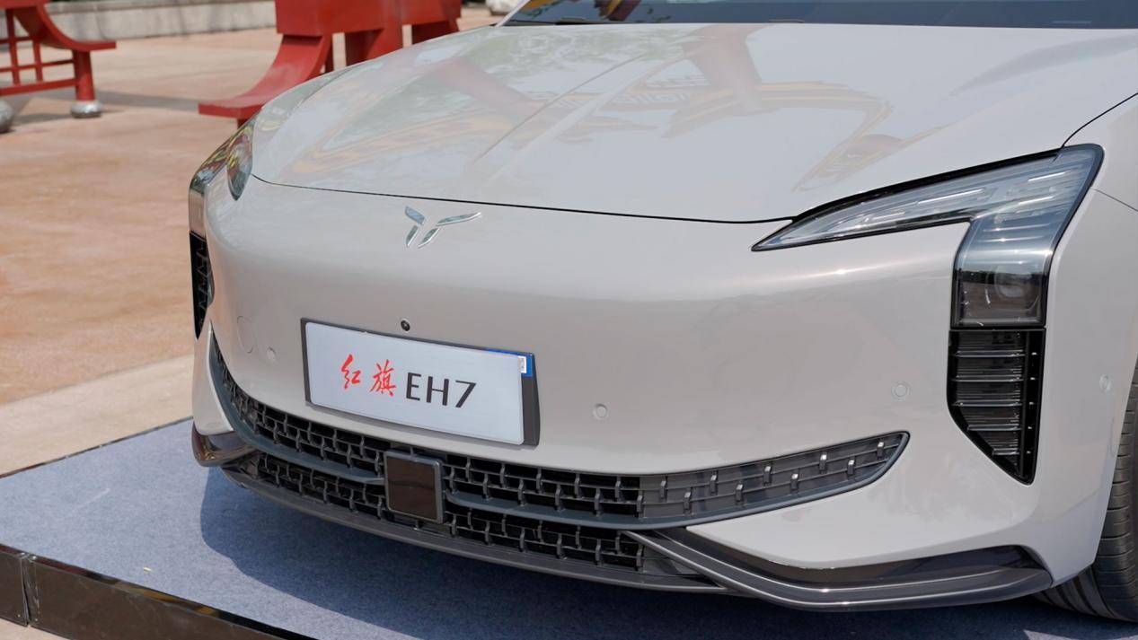首先這款車外觀設計有別于紅旗其它車型,車標采用了紅旗新能源全新車標,紅旗飄揚的簡化車標。