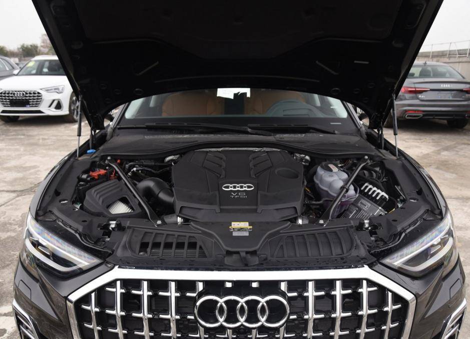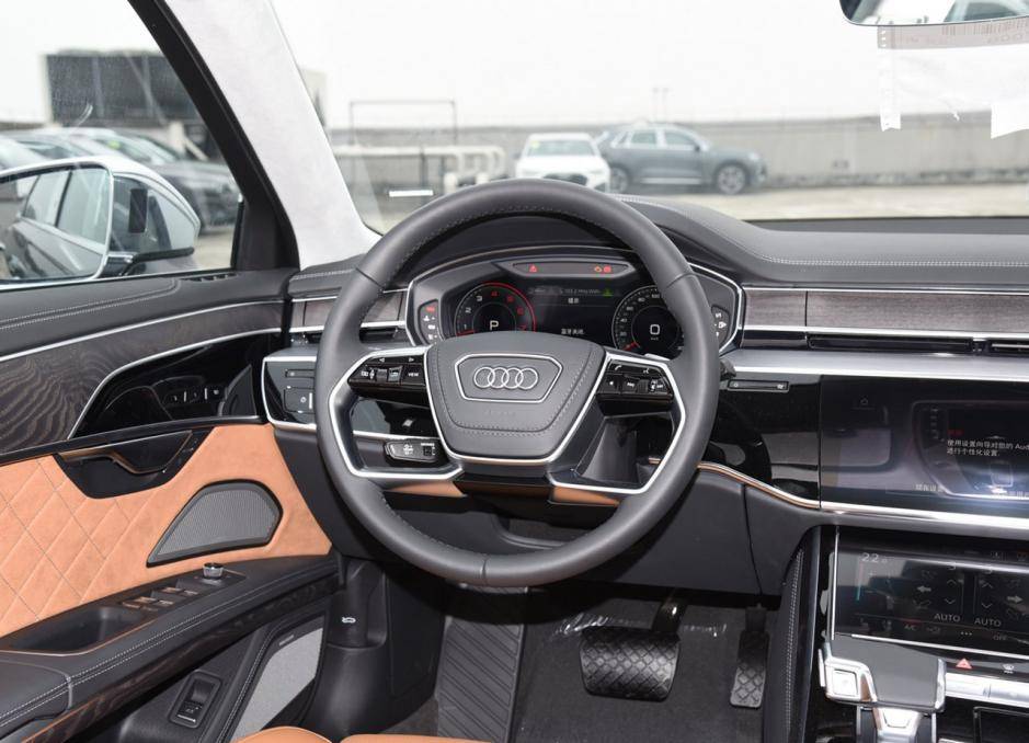 外觀方面,創新不存在的,新車車漆有新品。除了早期車型的配色外,新車推出了增碳紀棕配色,當然你也可以指定雙色外觀,個性化的配色也能展示出這款新車的身份。前臉依舊是多邊形大格柵設計,氣勢十足,兩側有造型時尚的大燈,這是奧迪的賣點之一,兩側導流槽有風刀設計,由于車身整體比較長,前臉觀感上略顯扁平。