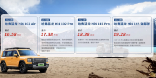 先說說剛上市的2024款猛龍吧,價格比之前更有競爭力了,共分為四款車型,Hi4 102 Air售16.58萬、Hi4 102 Pro售17.38萬,Hi4 145 Pro售18.38萬,Hi4 145穿越版售19.28萬。最關(guān)鍵的是車輛在很多關(guān)鍵領(lǐng)域進行了改進。