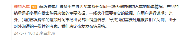 關于這點理想的回應是這樣的,有不少一線員工,需要真實的數據來對面顧客,而且有不少其他榜單在這段時間出現,所以恢復銷量榜。