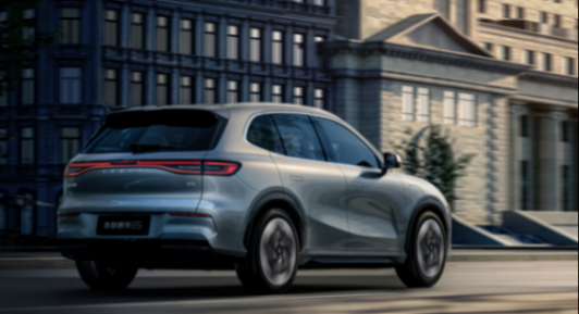 在車尾部分,新車采用時下流行的貫穿式尾燈,呈中間細兩頭粗的構造,中央位置設有點陣式光源,由此向兩側伸展出線性燈帶,最外側向下彎折繞回形成閉環,有著很高的辨識度。后備箱線條凹凸有致,牌照框設置在下方的后包圍處,兩側有額外的凹陷和紅色反光條,有效提升了車尾的層次感。
