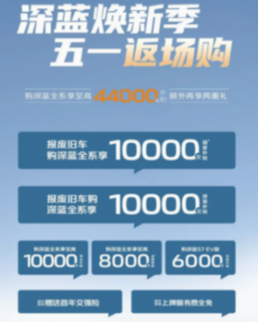 近日,深藍汽車推出了“煥新季”購車活動,購買深藍全新享至高4.4萬元補貼,包括1萬元現金優惠;報廢舊車可享1萬元國家補貼,深藍汽車再補1萬元;至高8000元金融貼息;購買深藍S7 EV版可享6000元保險補貼,另外還有贈送首年交強險和免上牌服務費等權益。
