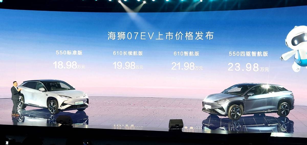 比亞迪海洋網終于有一款顏值高的純電SUV了!日前,基于全新的e平臺3.0 Evo的海獅07 EV正式上市,定位純電中型SUV,共推出四種版本,售價為18.98-23.98萬元。