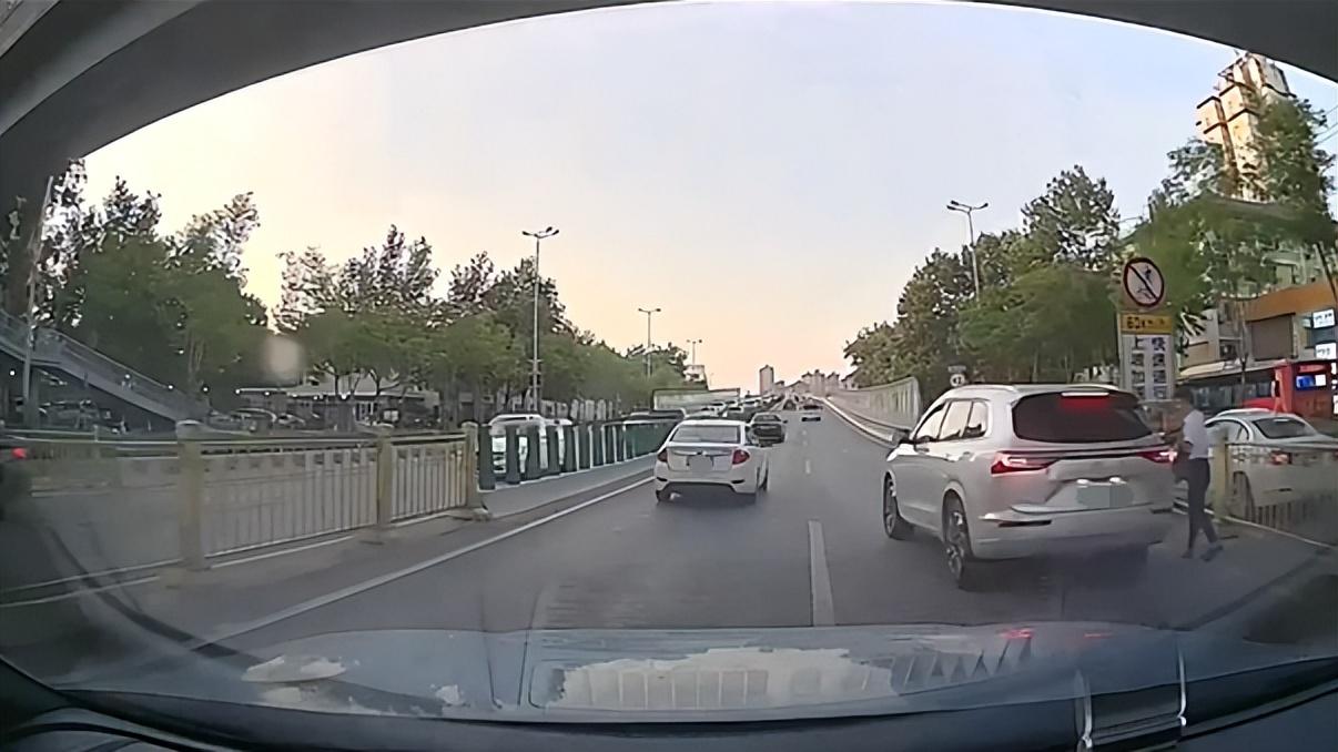 比如近期粉絲投稿的這個視頻,這是一條封閉的道路,車流很大,前車卻突然停車下客,還好視頻車離前車有較遠的距離,同時也看遠注意到了前車的動態,他沒有冒然減速剎停在前車后邊,而是觀察了左后方情況后,找準時機變道了過去,成功避免可能發生的追尾事故。