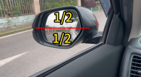 右后視鏡,車身占1/4,天占1/3,地占2/3。