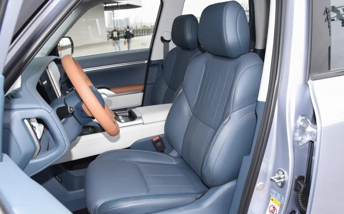 深藍G318車身尺寸分別為長5010mm/寬1985mm/高1960mm,軸距為2880mm,尺寸相比于豹5、坦克400 Hi4-T還要大上一些。體驗者180cm、體重76kg,駕駛位調整舒適坐姿后,頭部有1拳3指的余量,座椅填充厚實,同時座椅兩側的護翼較為寬大,提供不錯得支撐,坐著舒心;來到后排,頭部空間剩余1拳3指,腿部超過2拳,同時后排中間地臺為純平設計,可以正常放下雙腳,中間座椅靠背較軟,整體體驗感良好。