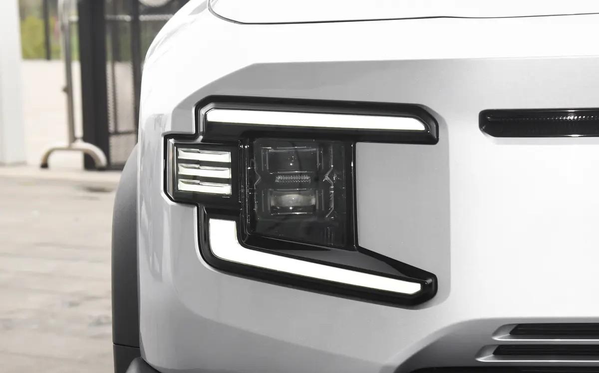 外觀方面,深藍G318采用了“方盒子”造型,車頭輪廓硬朗方正,配合大面積封閉式前面板和類似字母C形的大燈組,展現出硬派SUV的特質,同時不乏科技感。前保險杠設計得比較寬大,并配備了鍍鉻修飾,進一步強調其硬派SUV的身份。