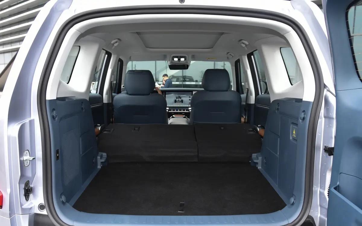 深藍G318的后備廂設計得比較規整,右側帶有一個220V電源接口。常規下容積為810L,放倒后排座椅后,最大可拓展至1747升,不過座椅靠背和后備廂地臺有一點坡度。