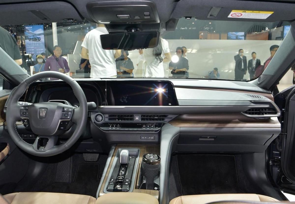 新款豐田皇冠在內飾的用料上非常厚道,與旗艦級轎車的定位相當匹配。中控臺上使用大量實木和皮革材質包覆,方向盤使用真皮材質,觸感十分細膩。 貫穿式雙聯屏也出現在了這款中大型旗艦轎車上,不過有一說一,和國產旗艦級轎車的貫穿式液晶屏還是存在一定的差距。