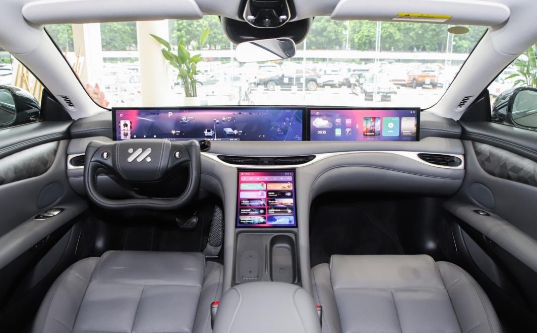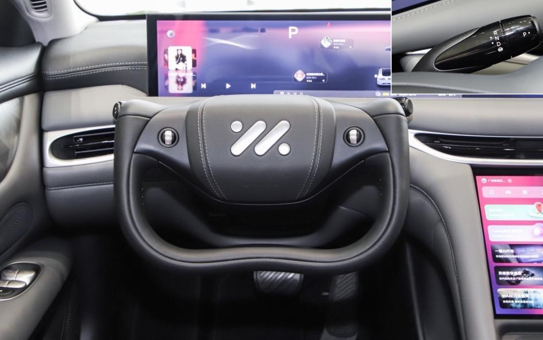 選裝的YAT半輻式方向盤帶來了開闊的前方視野,真皮的手感也比較舒適。不過,在轉(zhuǎn)較大角度的彎需要接方向時,就不那么舒適了。為此,新車標配了智能四輪轉(zhuǎn)向系統(tǒng),利用后輪的同向或反向偏轉(zhuǎn),能提升變線時車身穩(wěn)定感和縮小轉(zhuǎn)向半徑。兩側(cè)橫輻上布置了最簡單的四向滾輪,控制邏輯與特斯拉的相同。右后方是懷擋式電子擋位,可實現(xiàn)上車即上電。智能駕駛方面,標配含1個激光雷達、3個毫米波雷達和豐富攝像頭的感知硬件,并搭載了英偉達Orin-X芯片,算力達254TOPS,智己汽車宣稱將在第二季度實現(xiàn)無圖城市NOA測試,第三季度量產(chǎn),年內(nèi)全國通用。