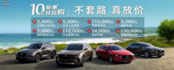長安馬自達官方近日宣布,今年1-4月終端零售銷量實現了同比75.6%的增長。為響應國家“以舊換新”政策,長安馬自達再次優化了“10億鉅惠狂歡購”一攬子購車福利,具體詳情如下: