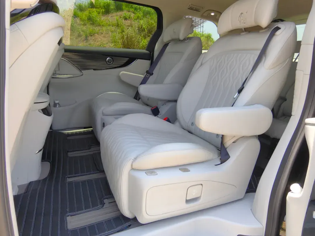 作為一部MPV,采用2+2+3的座椅布局,其中第二排座椅更是支持12向電動(dòng)調(diào)節(jié),通風(fēng)加熱按摩、扶手智慧屏,配備腿托、小桌板。前后左右四向滑動(dòng)兩獨(dú)立豪華航空座椅,實(shí)際乘坐體驗(yàn),坐墊柔軟,靠背支撐性不錯(cuò)。