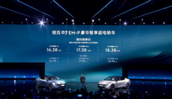 5月17日,領(lǐng)克07 EM-P正式上市,售價(jià)16.98-18.98萬(wàn)元,并推出限時(shí)優(yōu)惠6000元。新車基于CMA Evo架構(gòu)打造,搭載了1.5T發(fā)動(dòng)機(jī)+電機(jī)組成的插電混動(dòng)系統(tǒng),配備了魅族車機(jī)系統(tǒng),最低饋電油耗4.8L/100km。