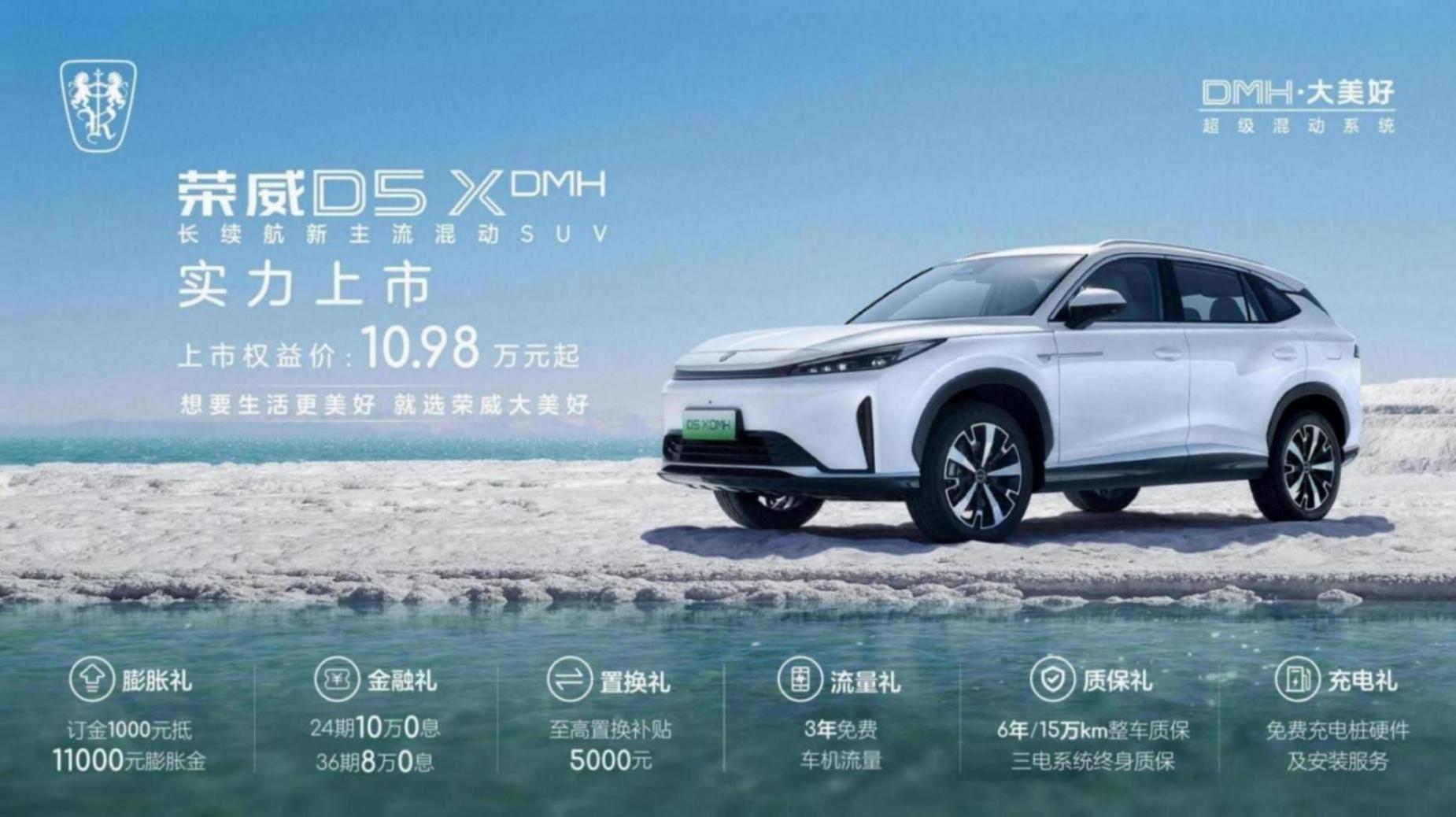 2024年5月2日榮威D5X DMH正式上市,新車共推出4款車型,限時權益價10.98萬元~13.68萬元。動力上,搭載1.5T插電式混動系統,純電續航135km,綜合續航1300km。