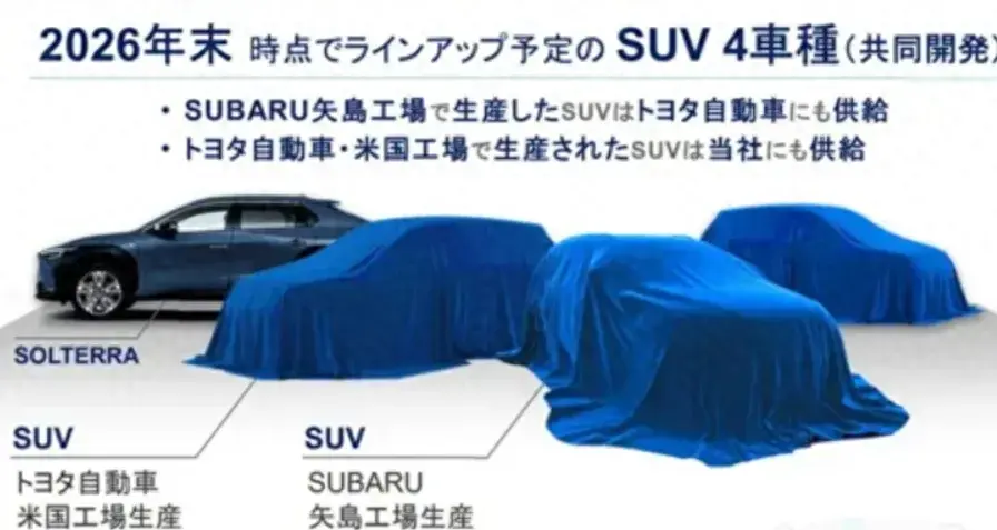據(jù)外媒報道,將于2026年上市的三款SUV中的一款將在斯巴魯位于日本的矢島工廠生產(chǎn),另一款將由豐田在美國生產(chǎn)。這款美國生產(chǎn)的車型據(jù)外媒推測可能是三排電動跨界車,預(yù)計將于2025年在肯塔基州投入生產(chǎn),并且會衍生出帶有豐田和斯巴魯標志的兩種車型。