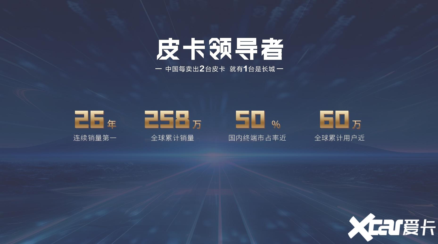 中國只有兩種皮卡,一種是長城,一種是其他。全球累計銷量突破258萬輛。國內終端市占率近50%,中國每賣出兩臺皮卡,就有一臺是長城。長城炮誕生四年多,全球累計用戶接近60萬,累計43個月銷量過萬,蟬聯中國皮卡銷量冠軍,創造了“長城炮速度”,讓皮卡走進千家萬戶,成為真正的國民車。