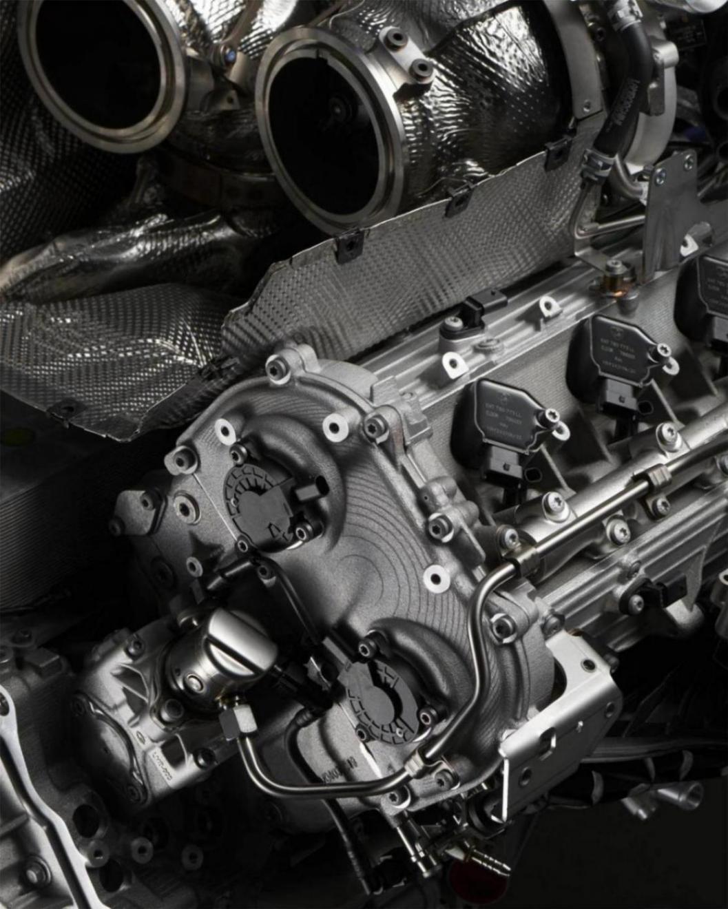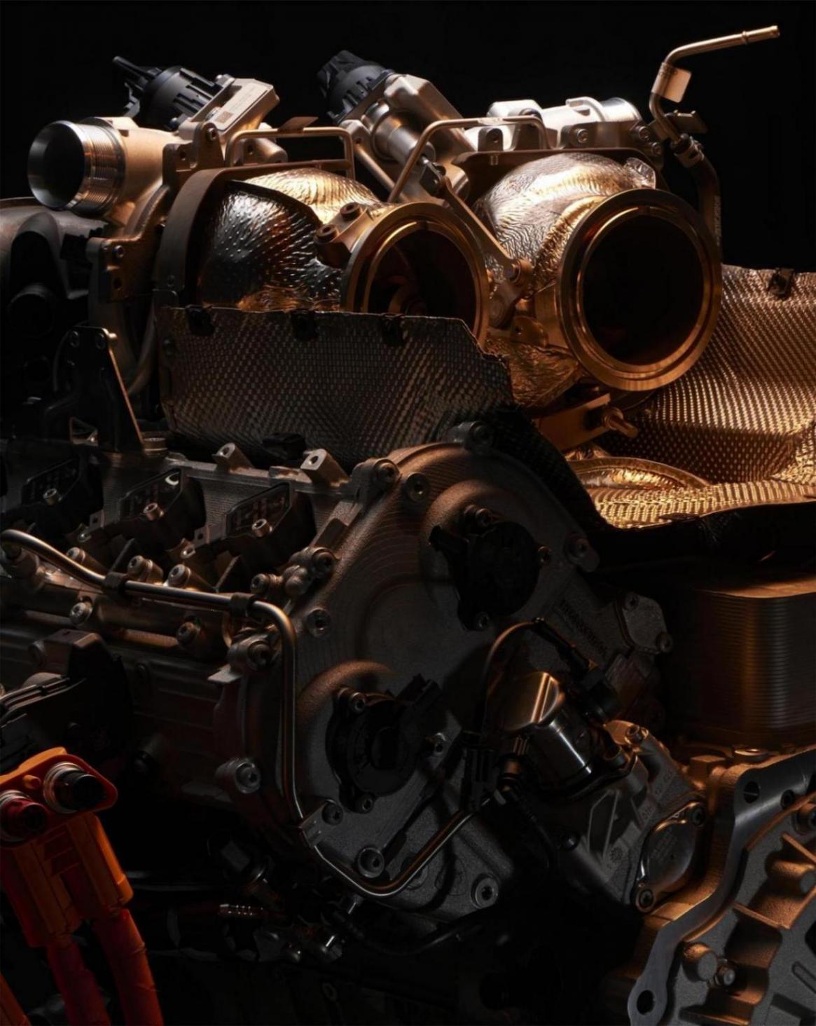 這款雙渦輪增壓V8發動機的排量為4.0升,升功率高達200馬力/升。在9000~9750轉/分的轉速范圍內,內燃機發動機的最大功率可達800馬力。發動機最高轉速達10000轉/分,這一通常出現在賽車發動機上的數據使全新V8發動機在公路合規超跑車型中脫穎而出。得益于電機和內燃機發動機的完美協作,新車型配備的動力系統在4000~7000 轉/分的轉速范圍內可實現730牛·米的峰值扭矩,呈現與賽車發動機相似的令人振奮的加速過程。