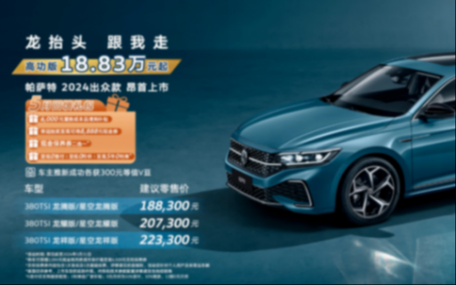 B級中型轎車市場一直是合資汽車品牌爭奪的高地,現在又有很多中國汽車品牌的加入,一時間百花齊放讓消費者挑花了眼。如果你想買一款長久開下去,并且擁有出色的綜合產品力,那么我建議你首選上汽大眾40周年獻禮之作——帕薩特2024 出眾款,這是今年推出的新款車型,6款在售車型指導價格為18.83-22.33萬元。