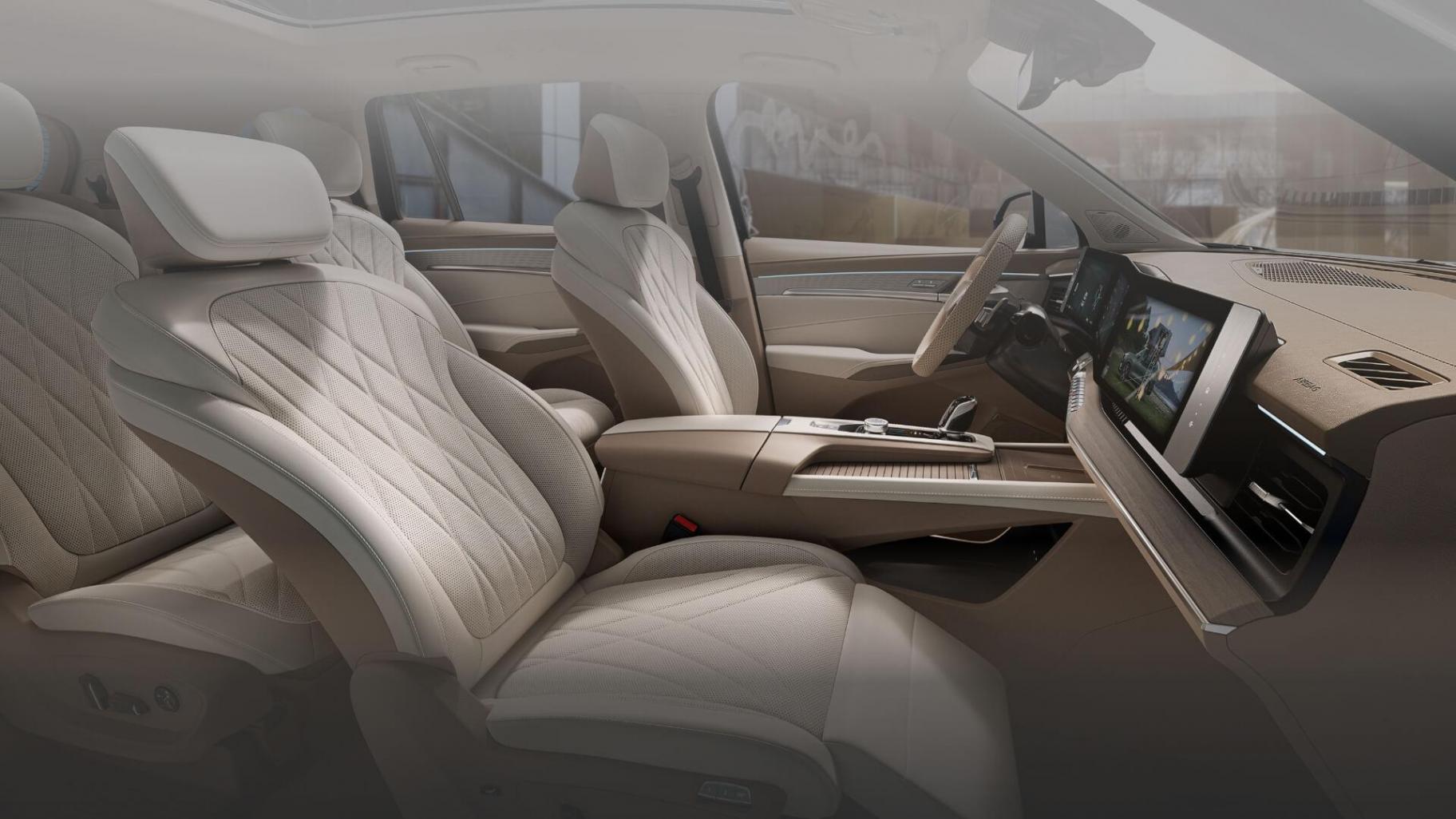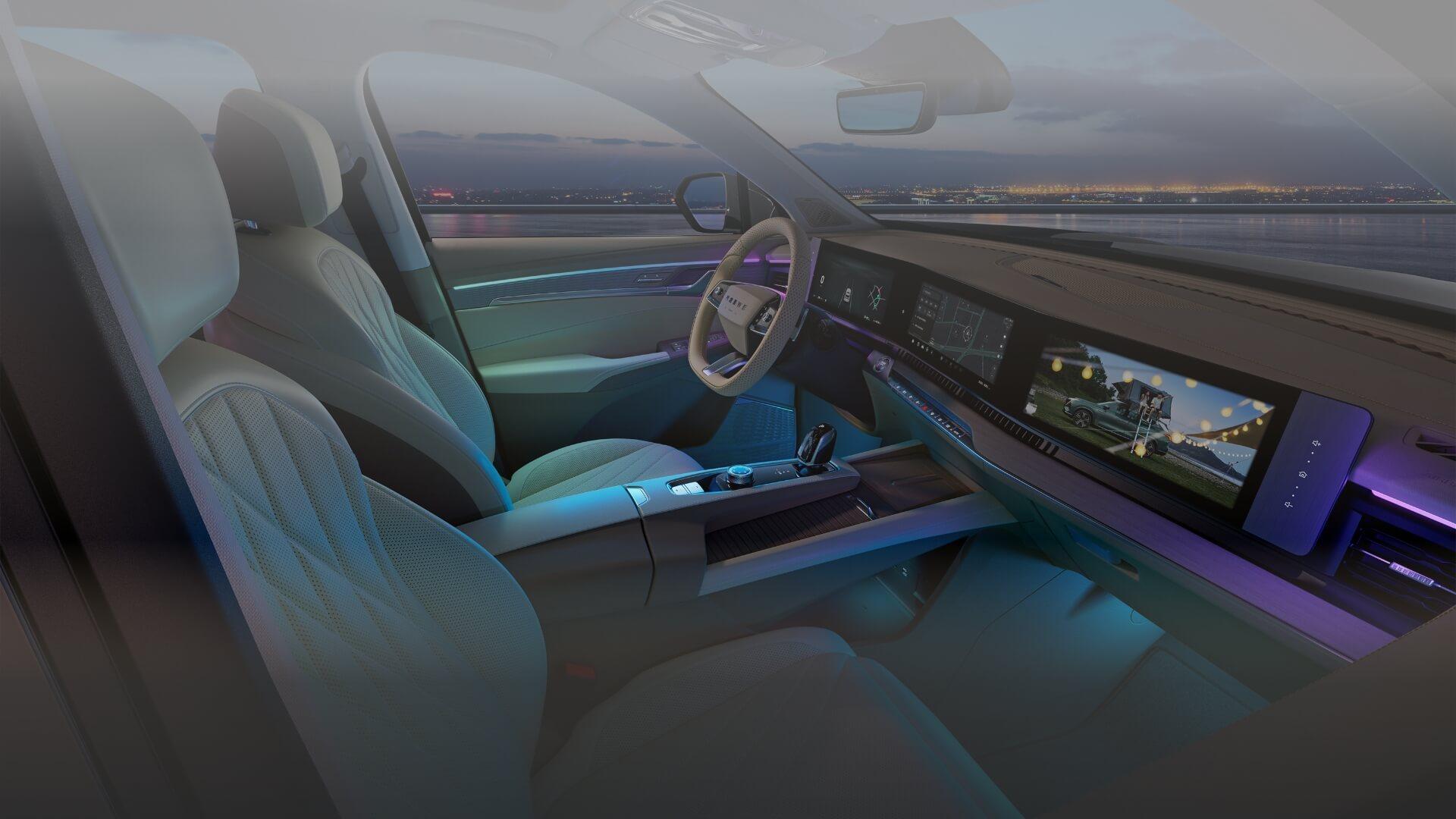 內(nèi)部設(shè)計(jì),車內(nèi)匹配了全液晶行車電腦,全液晶中控屏幕以及副駕駛娛樂屏幕,內(nèi)部的科技感打造比較理想。此外,絕大部分按鍵都是金屬材質(zhì)的的,同樣比較上檔次。