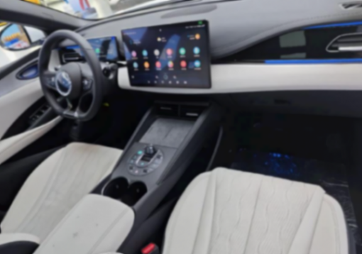 內飾有不少海洋生物仿生學的設計理念,比如多功能方向盤造型顯然就是海洋生物尾部造型風格,整個臺面也有更飄逸的線條處理類似海浪。細節上則是采用了紋路更復雜的打孔面料座椅,還有小水晶電子欄桿之類的小細節提升精致感。