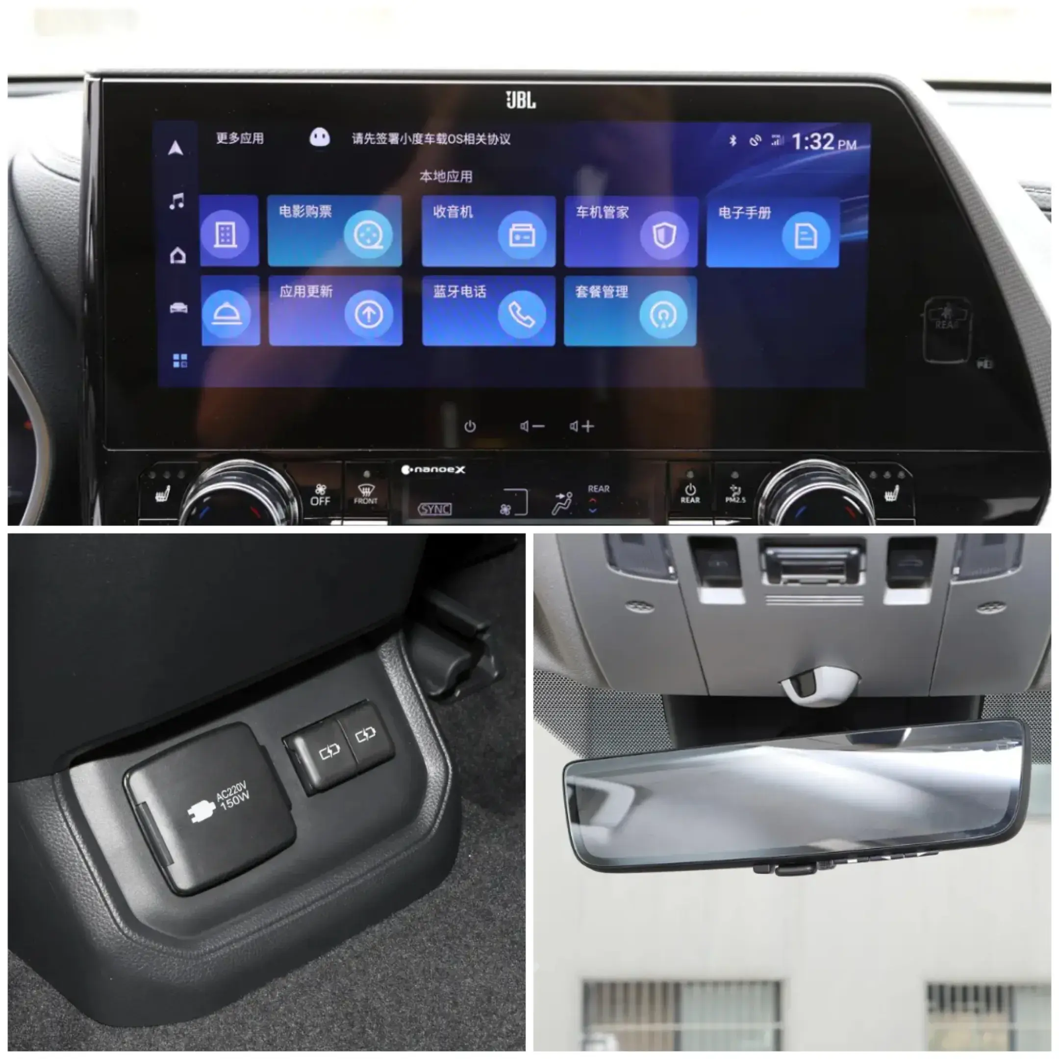 漢蘭達至尊版和昂科旗艾維亞版均配備了隨車220V電源插座,擴展了家用電器的進一步使用,不過沒有小桌板的設計,又阻礙了車內筆記本插電等辦公等應用場景。