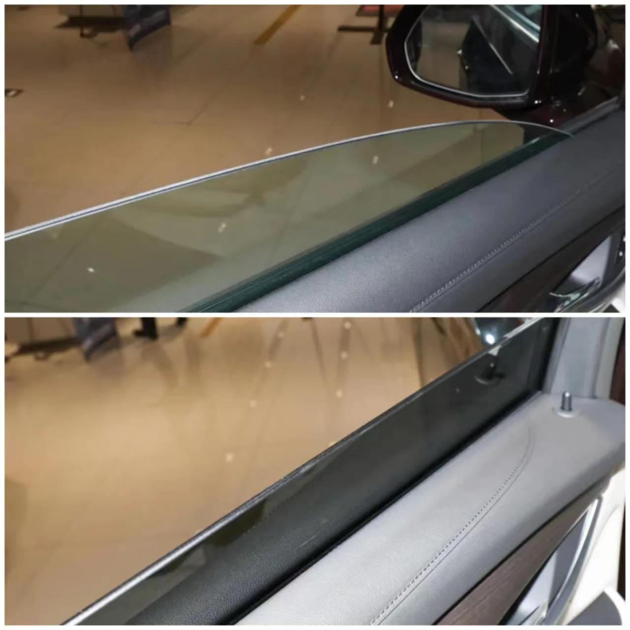 昂科旗艾維亞版前排的多層隔音玻璃(上)和后排隱私玻璃(下)