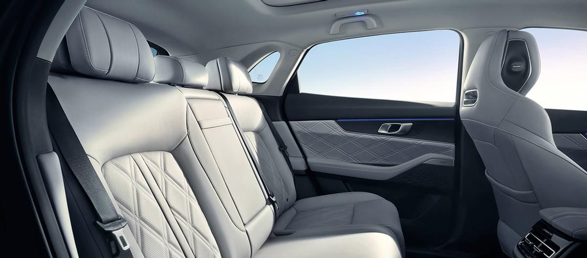 豪越L的車身長度為4860mm,軸距為2825mm,全系均為2+3+2的7座布局,雖然帶來了實用性的提升,但犧牲了一部分的乘坐空間和載物空間,后備廂容積為193-2360L。